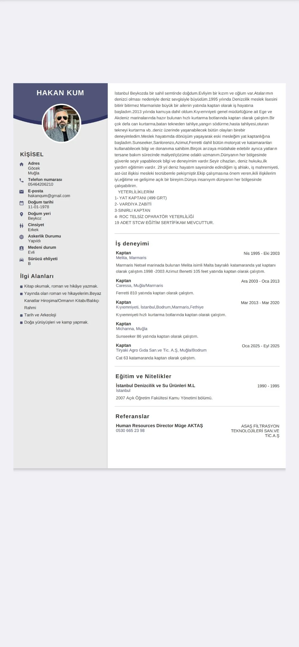⚓28 yıllık denizcilik tecrübemle, görev aldığım her yatı yalnızca bir tekne değil; temsil ettiği aile, marka, ve güven duygusunun bir parçası olarak yöneten bir yat kaptanıyım.
