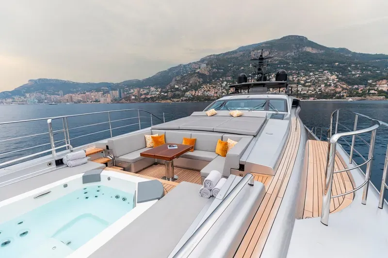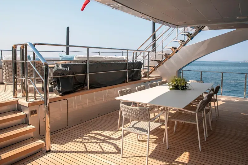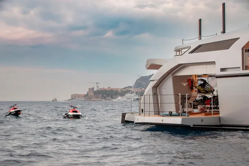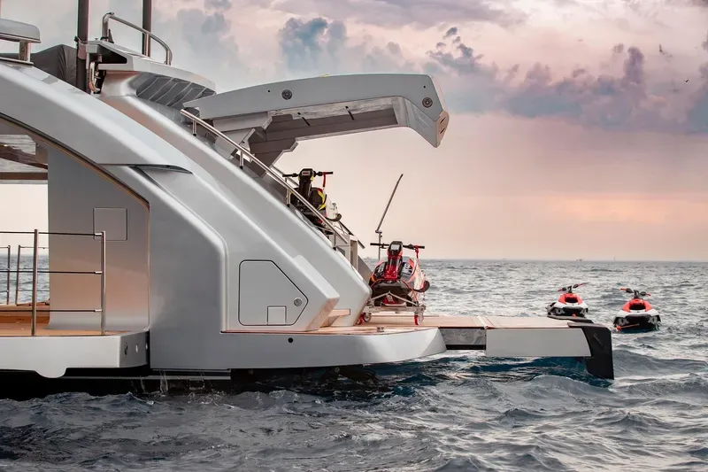 Geniş beach club alanı, tender garage ve su oyuncakları için optimize edilmiş platformu ile hem eğlence hem performans bir arada sunulur.